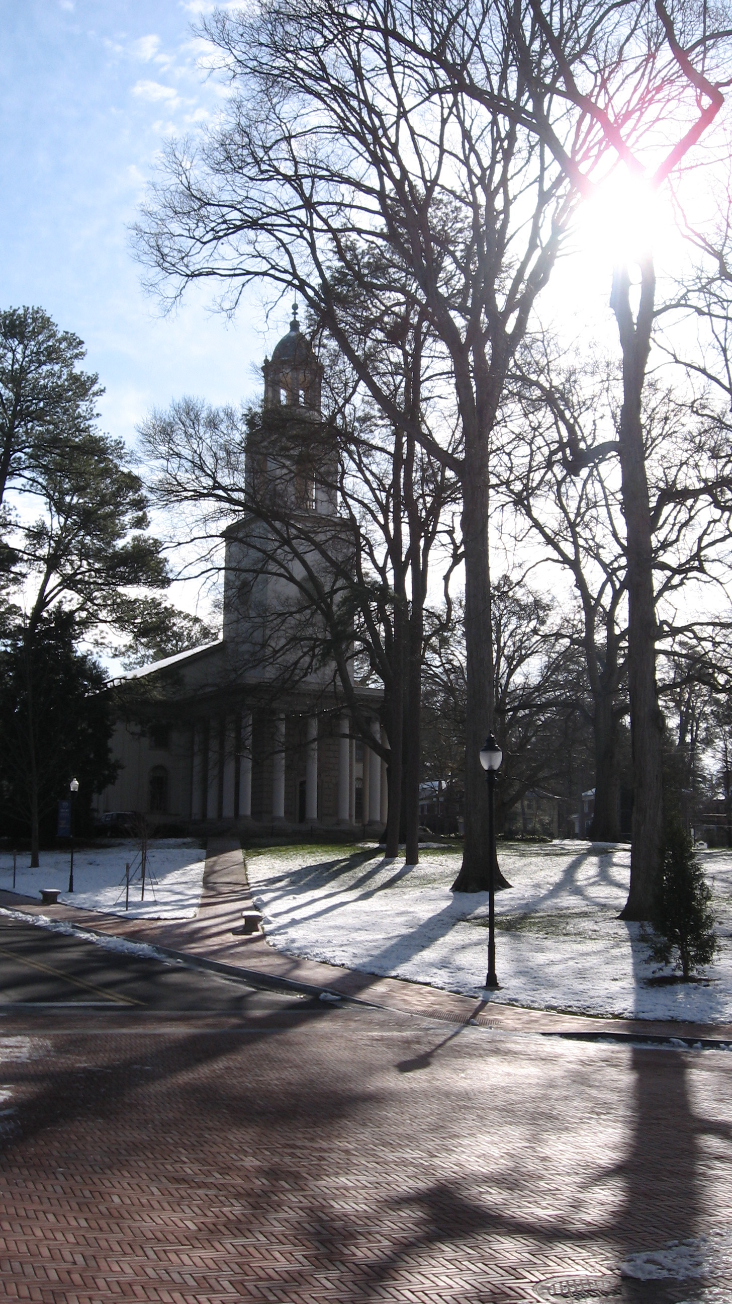 Because of the rain and the cold, we decided to drive to church,  Glenn Memorial UMC on Emory’s campus. As the Rev. Dr. David Jones was beginning his sermon entitled “Spring Training” he made an observant comment to the effect that it certainly was “spring” outside, as it had just begun snowing. We watched as everyone in the Glenn congregation turned their heads to the windows on either side of the sanctuary and there was a small amount of “murmuring” from the congregation–both young and old. Rev. Jones’ sermon was about Jesus’ being tempted out in the desert and about how Lent was in part a remembrance of this–but that we should not bear any difficult situation or circumstance by complaining or “murmuring” as the hebrew puts it in the Exodus story, but that we should tighten our belts, listen to the wisdom of our parents and grandparents from the depression era, and celebrate the good things that we do have–even as we are in the midst of difficult times.